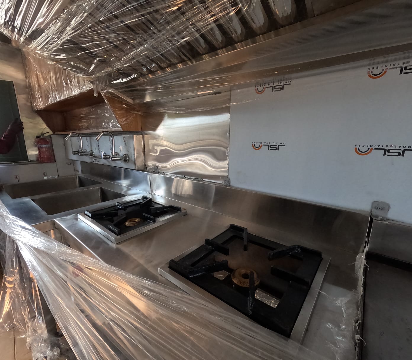 Ventilation & Exhaust: Two wall-mounted fans, SS exhaust hood and six 20W LED lights for adequate ventilation and lighting.