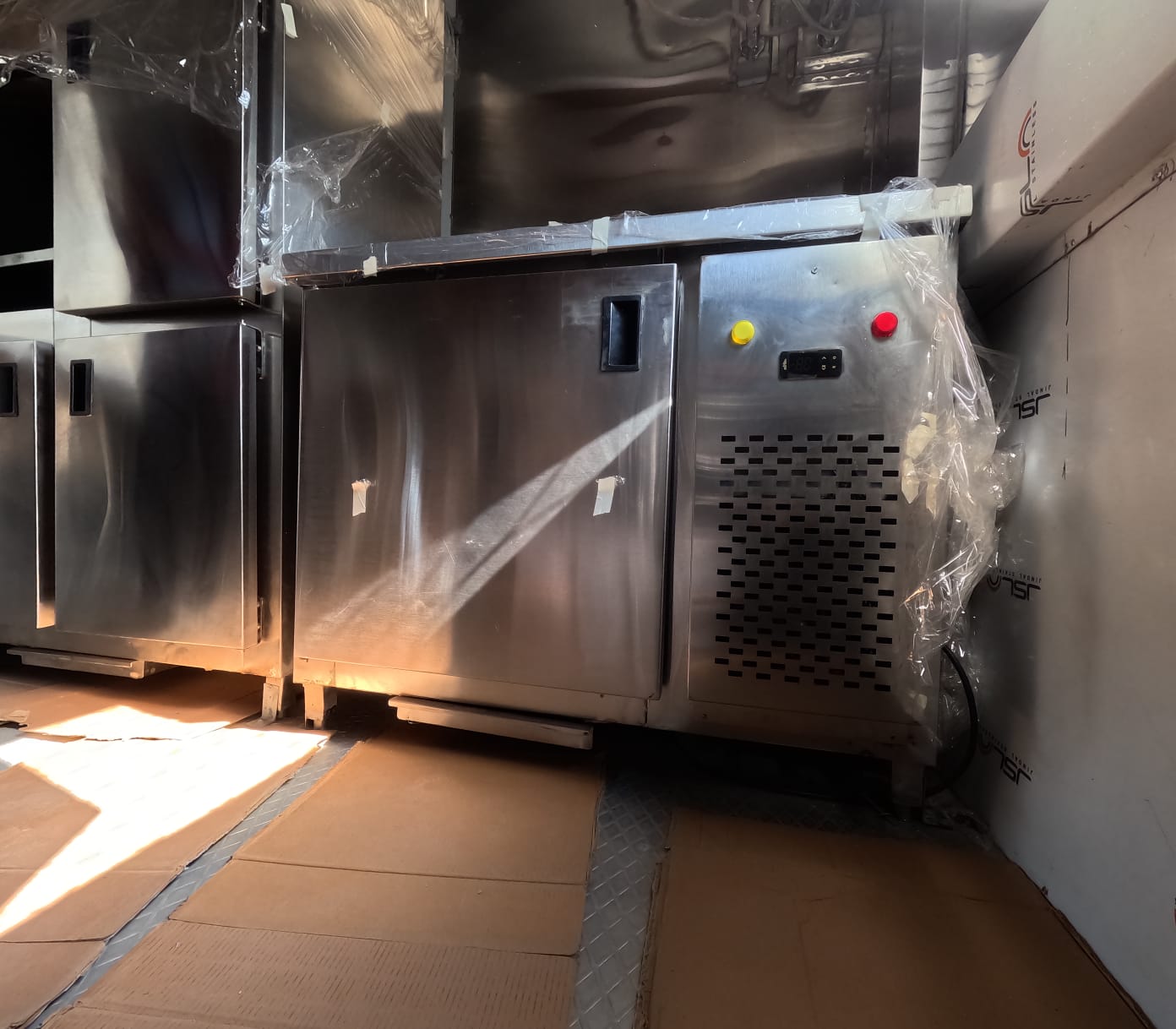 Well Equipped Kitchen: Includes a burner range, hotplate, four-door fridge, deep freezer, and stainless steel worktables for efficient field cooking.