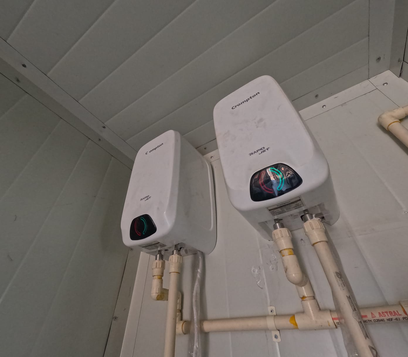 Water Facility: 800L overhead water tank, two instant geysers, and PUF insulated pipelines for efficient water use.